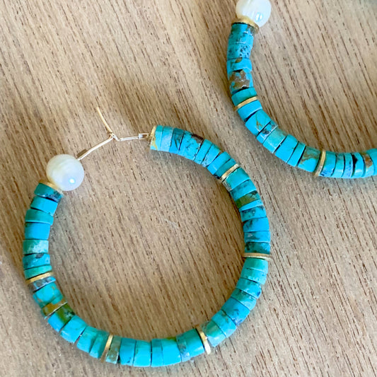 Turquoise and Pearl Hoops